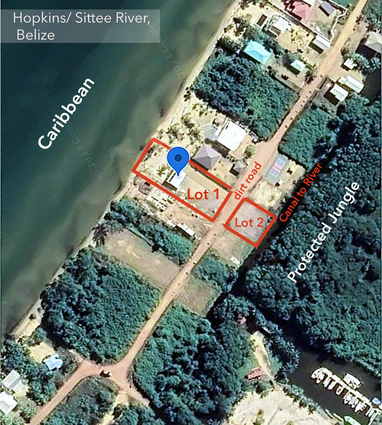 The second parcel is on the canal of Sittee River (lot 2), sitting just behind lot 1 across a dirt road. The river backs to acreage of protected rainforest.