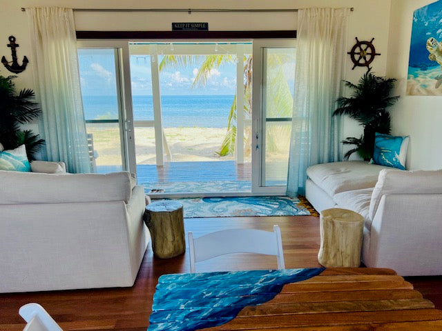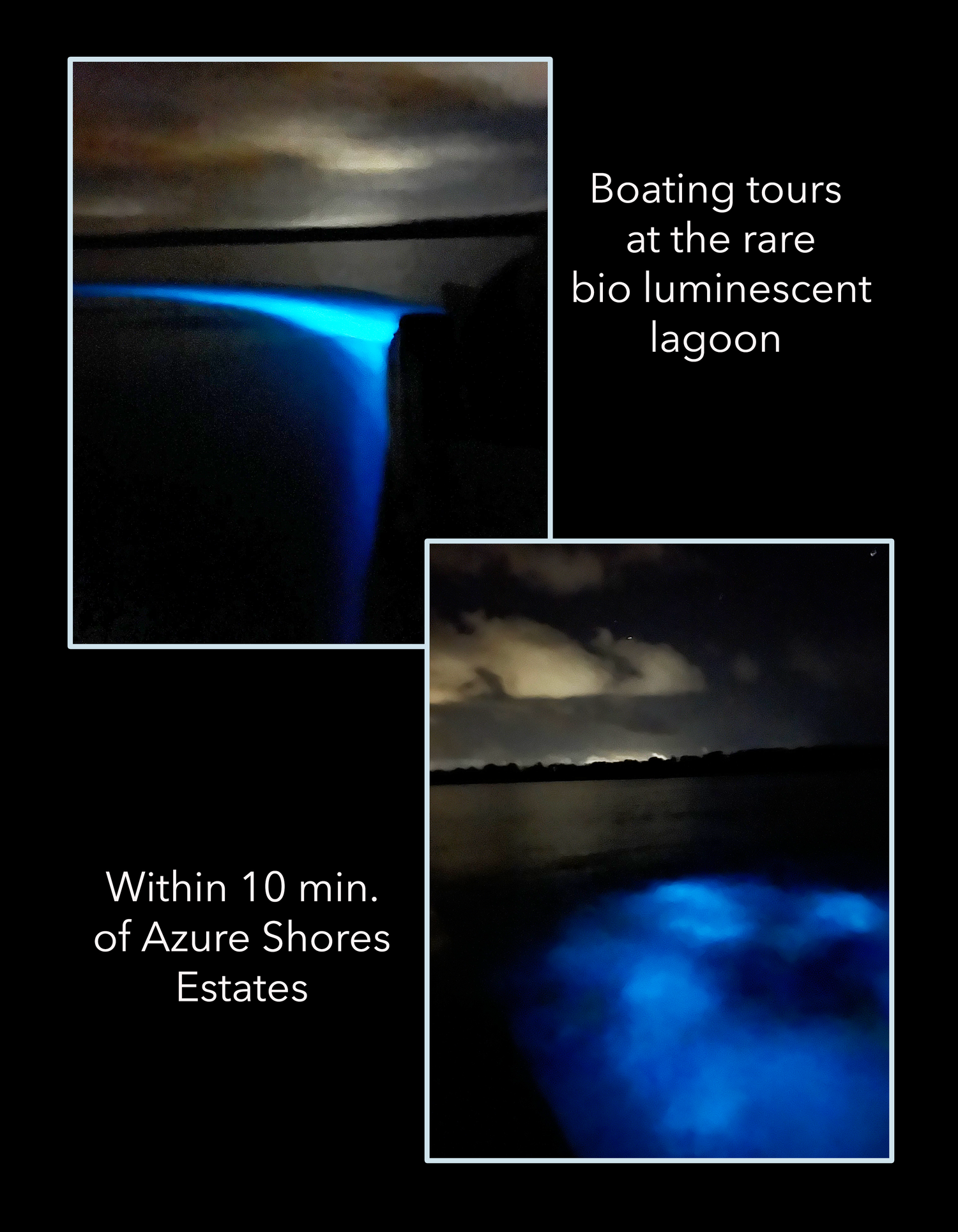 Much of our branding (Azure Shores) and custom glowing art in the Colada Cabana and commissioned for the villas, is inspired by the nearby bio luminescent lagoon!